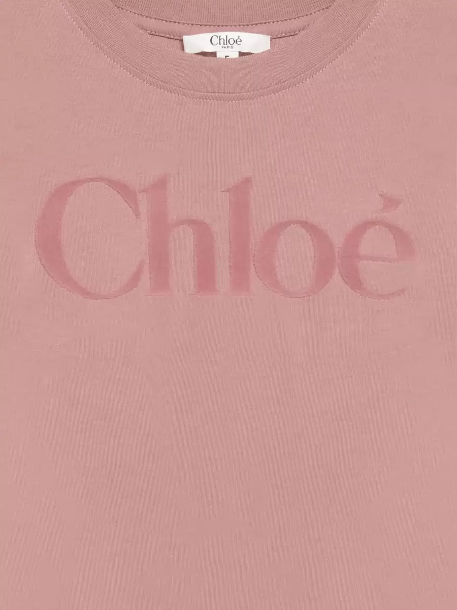 Organik pamuklu jarse kumaştan üretilen bu yuvarlak yakalı tişört, göğüs kısmındaki kadife efektli Chloé logo işlemeleriyle şık ve rahat bir günlük parçadır.