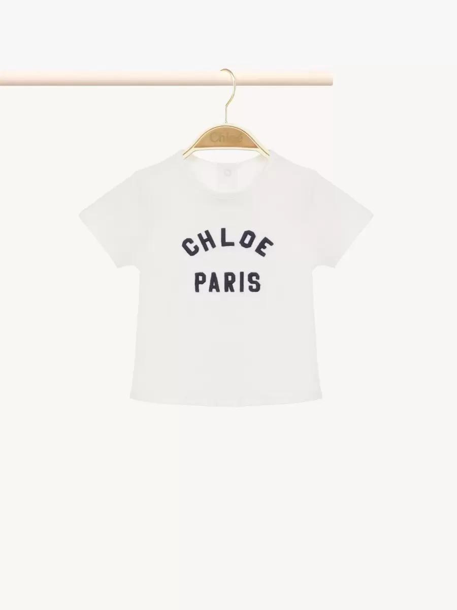 Organik pamuklu jarse kumaştan üretilen bu yuvarlak yakalı tişört, ön taraftaki kontrast Chloé Paris logosu işlemesiyle rahat, kısa kollu silüeti öne çıkarıyor.