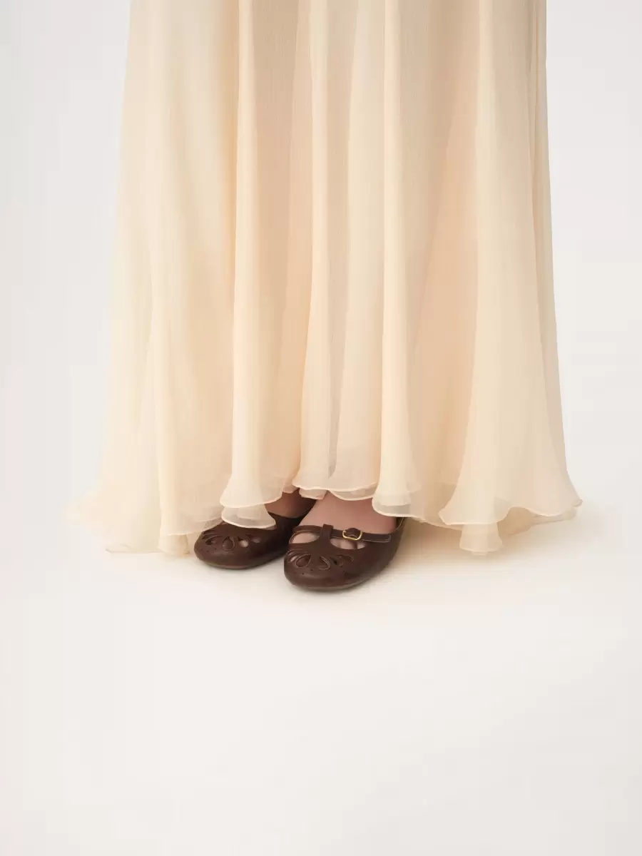 Akışkan maksi etek dış kabuğu: %100 İpek