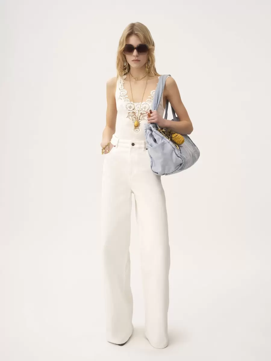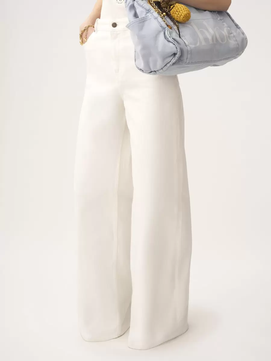Hafif organik pamuklu denimden yapılmış, yüksek bel, geniş paça kot pantolon.