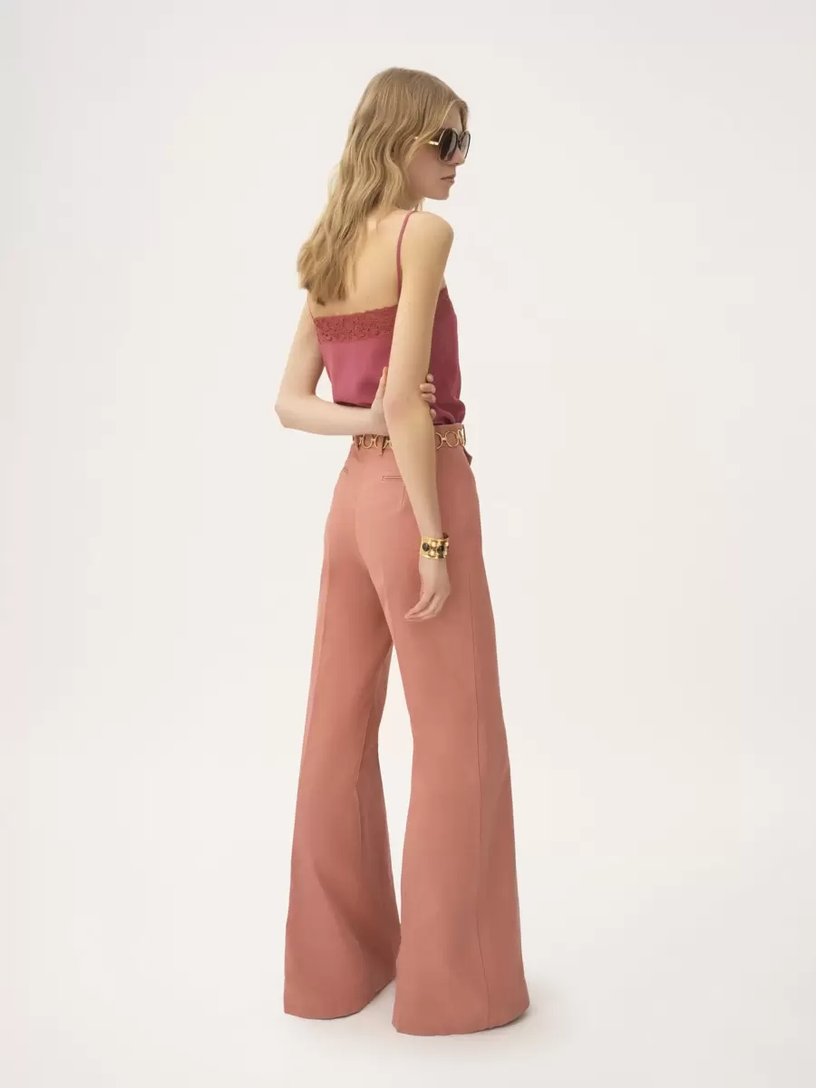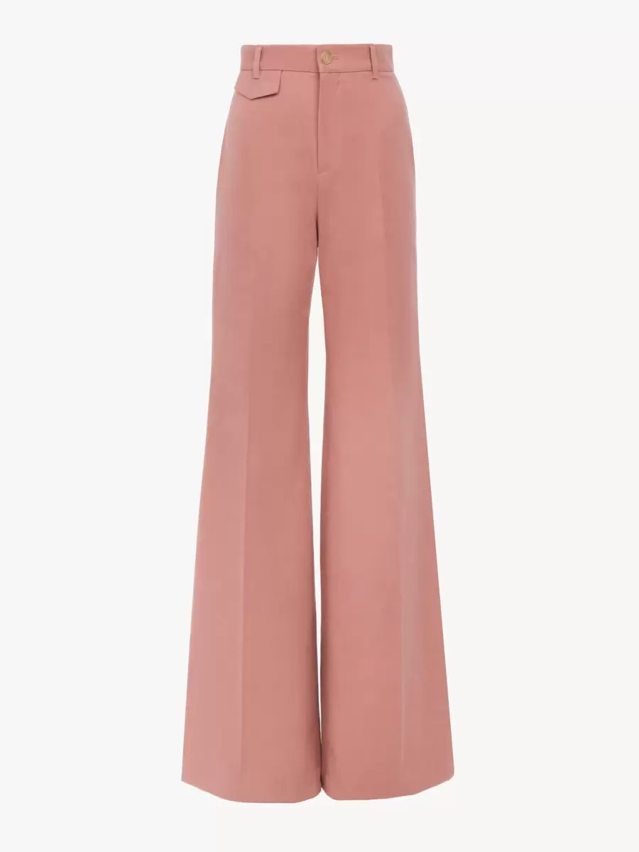 Pamuklu kanvastan yüksek bel kloş pantolon