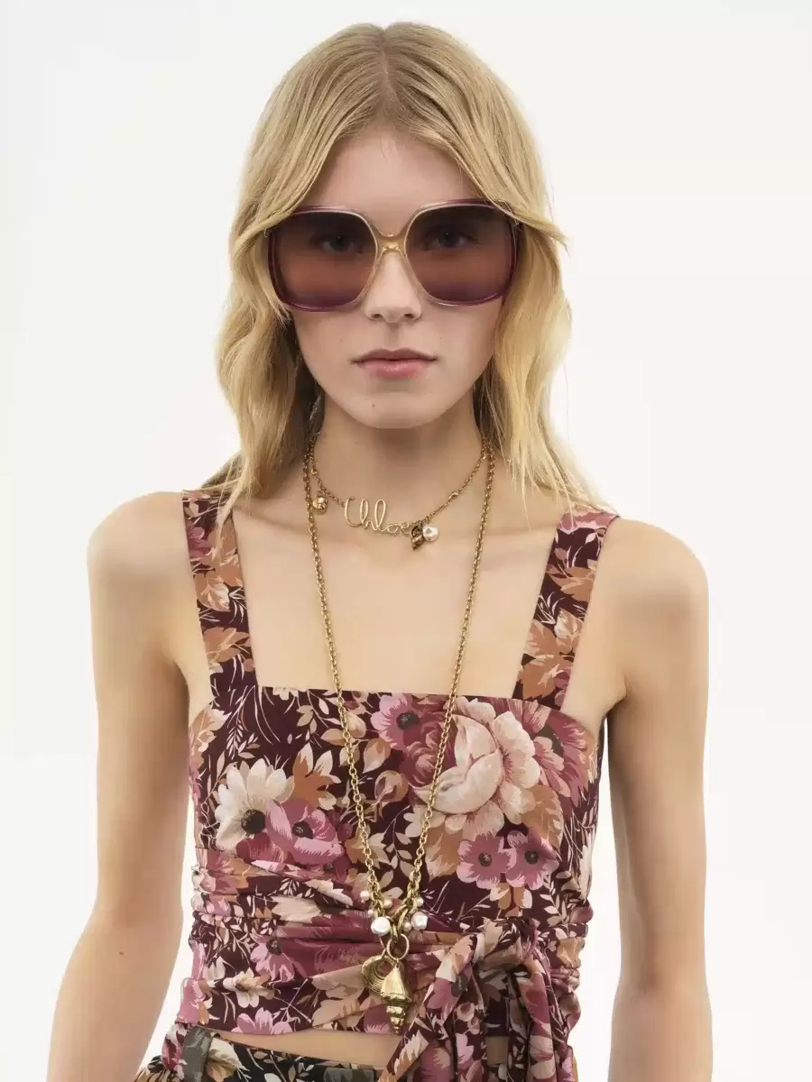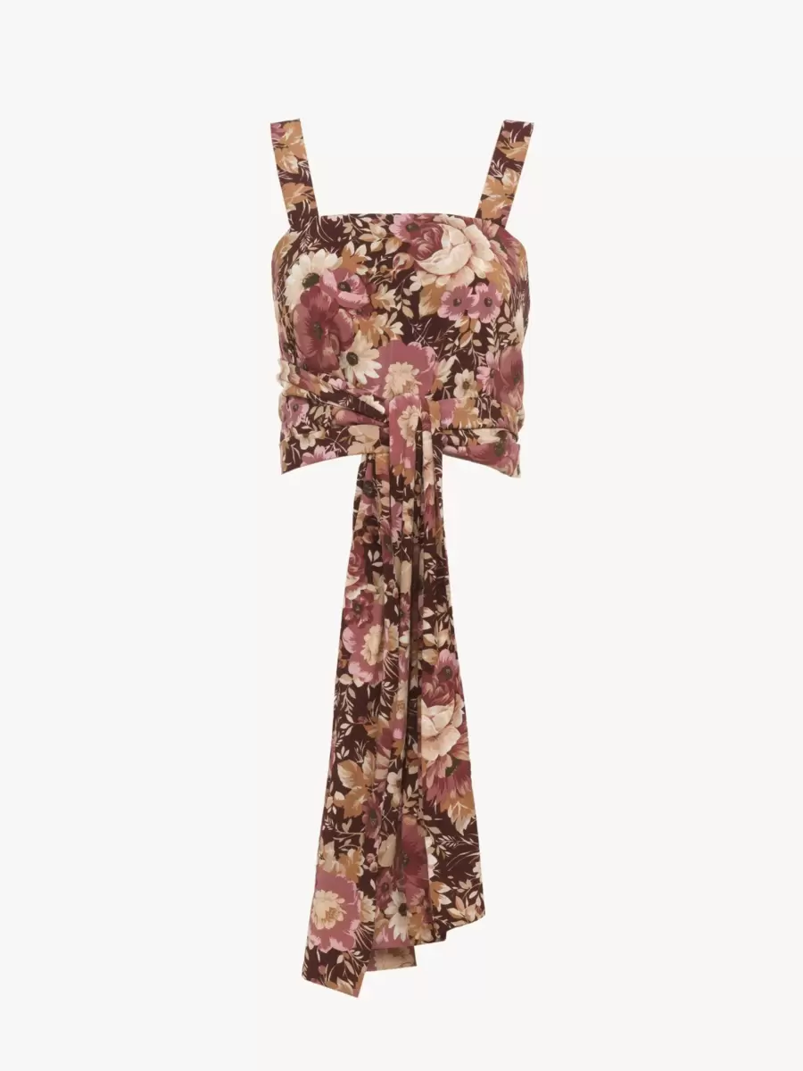 Maison’s Archives’dan esinlenerek tasarlanmış, gül desenli, organik ipek krep de şin kumaştan, önden bağcıklı kısa üst. Kare yaka ve önde düğümlü uzun bağcıklar bulunuyor.