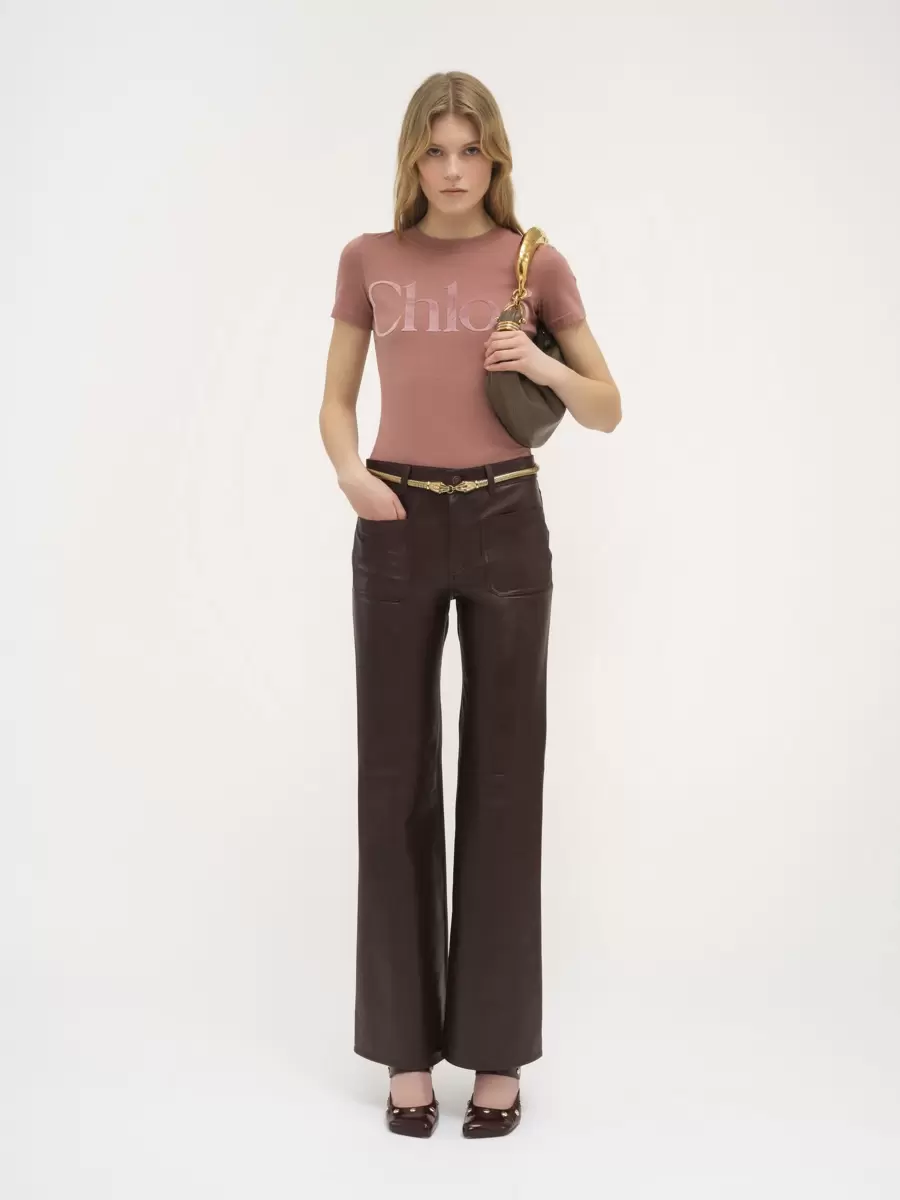 Ön tarafında mat kadife Chloé logosu bulunan pamuklu jarseden, yuvarlak yakalı, vücuda oturan tişört.