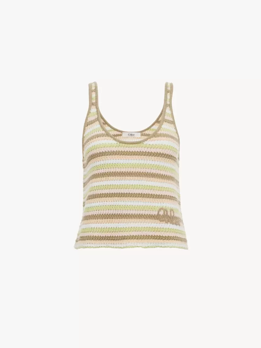 Kepçe yakalı ve belinde Chloé logosu işlemeli, organik pamuklu tığ işi örgüden kısa atlet.