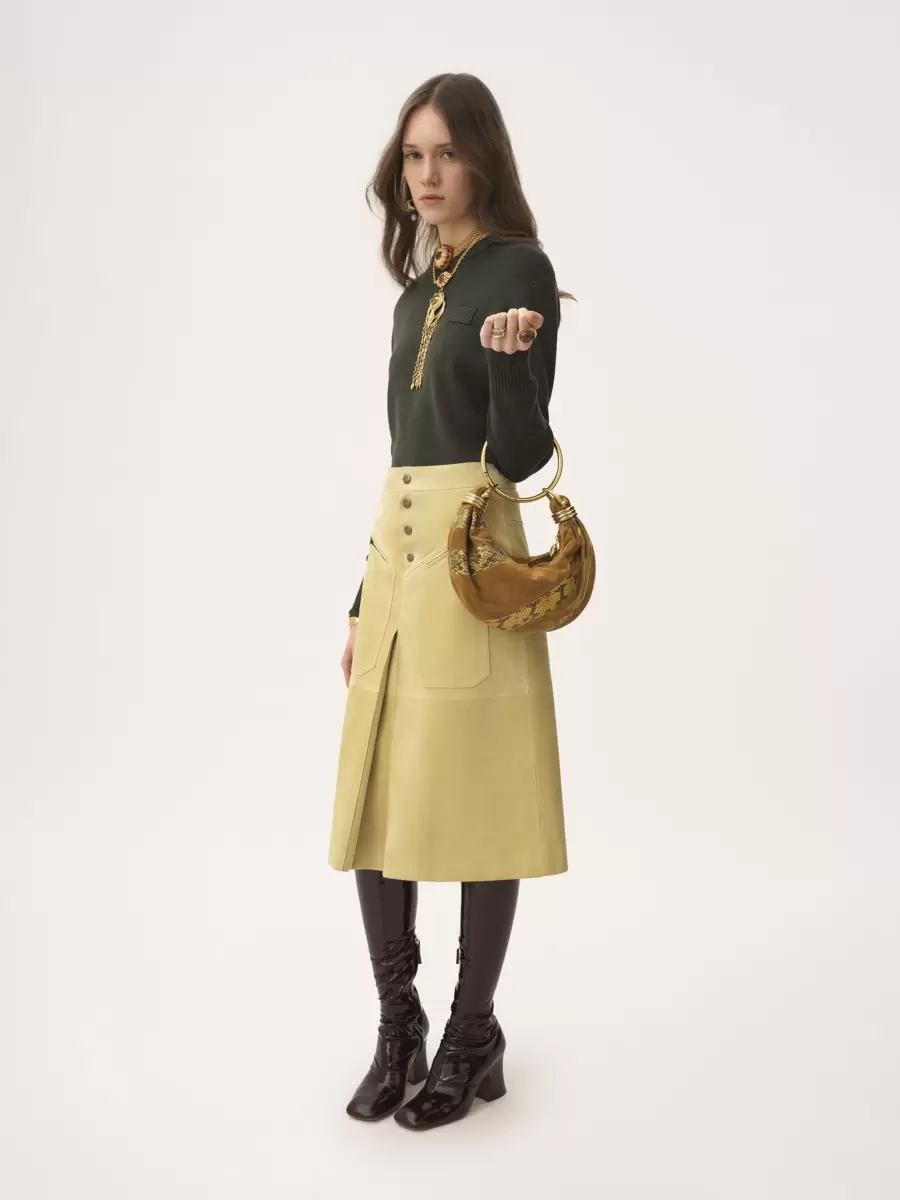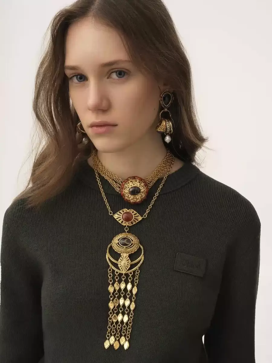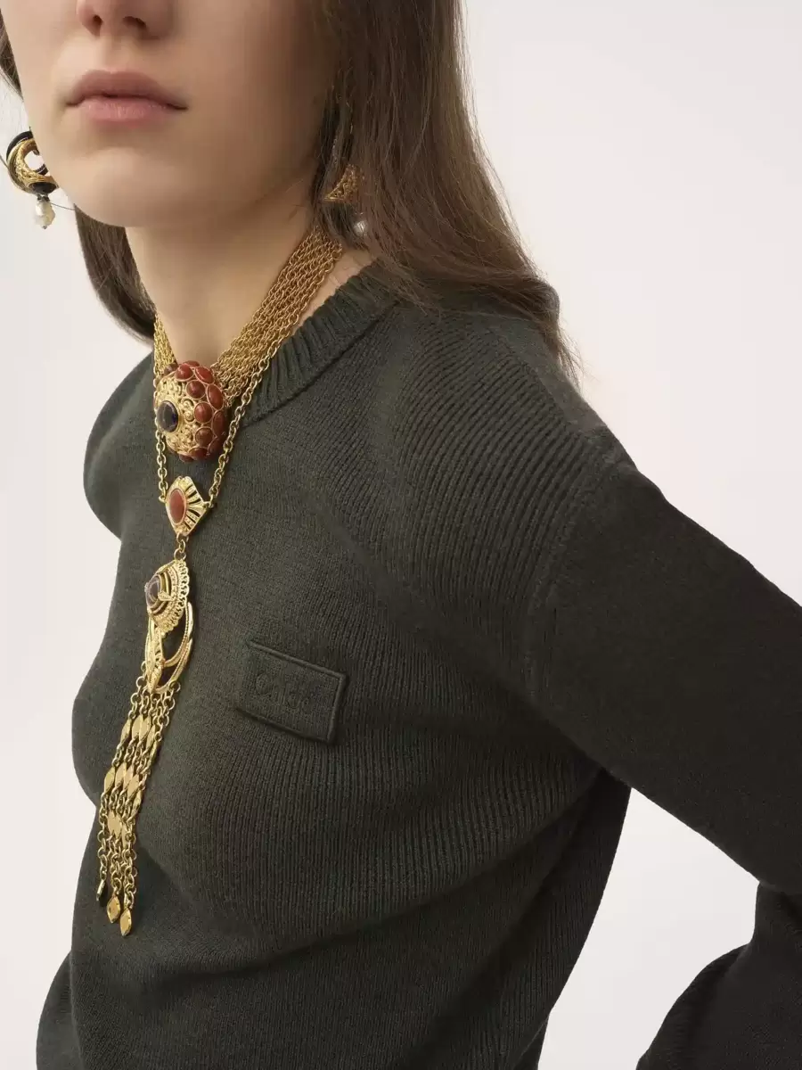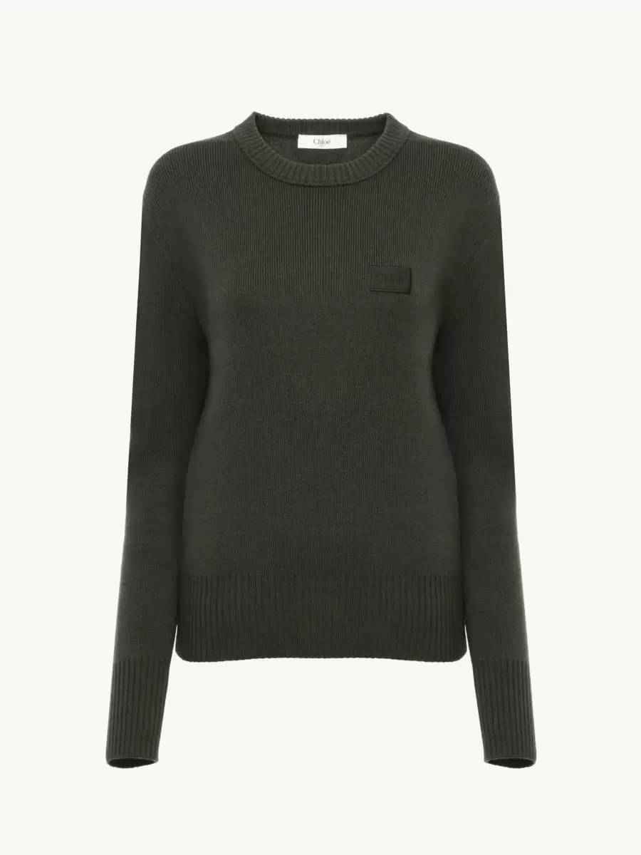 Merino yününden örme yuvarlak yakalı kazak, nervürlü süslemeler ve göğüs kısmında ince bir Chloé logosu yaması ile detaylandırılmıştır.