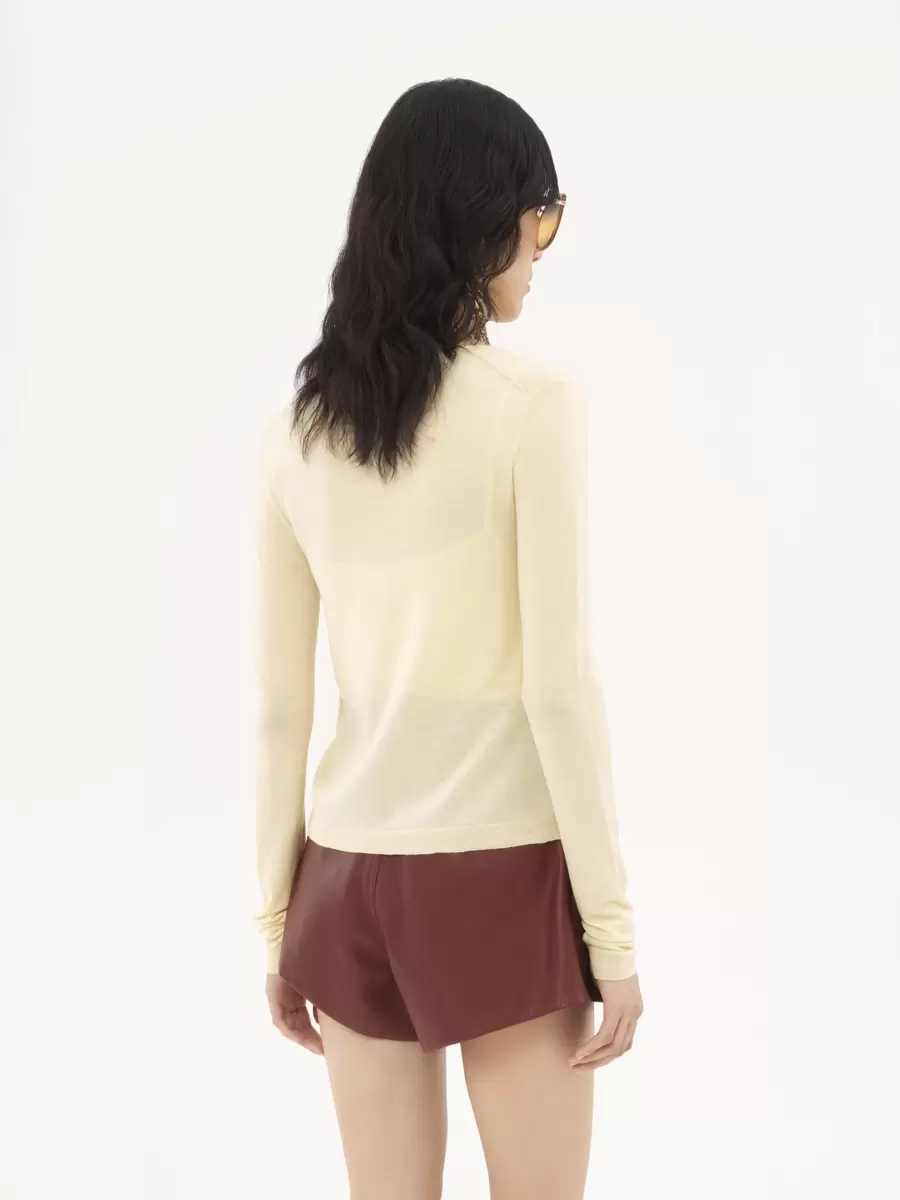 Süper ince yün örgüden, yuvarlak yakalı, dar kesim hırka